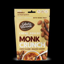 Just released in our KETO-FREINDLY Monk Crunch line comes a childhood favorite. Full of the nostalgia of fairs, hometown sweet shoppes and summertime fun, but without the added sugar and carbs, our Crème Brulee Monk Crunch almonds take our proprietary sweetener blend and natural flavors to deliver a sweet indulgence with grown-up responsibility. Release your inner child without a second thought!